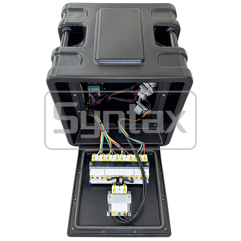 | Marchi dei componenti | Scatola di distribuzione da Syntax; Stanghe e prese industriali da Weipu; Interruttori da Schneider |